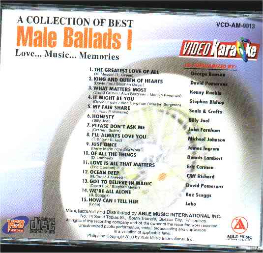 | 1 | A Collection of Best Male Ballads 1 |  |  |