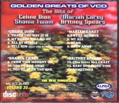 | 63 | Golden Greats Of VCD Carey,Celine, Twain, Britney | (Sold Out) |  |